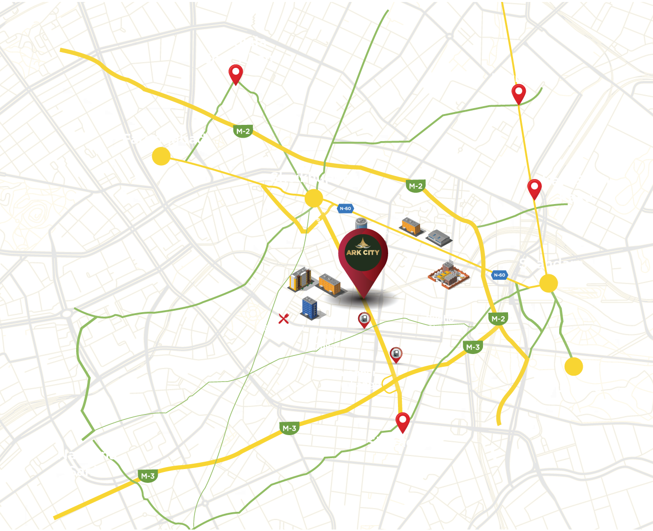 ARK City  is a project of Rai Developers that emphasizes accessibility and luxury . ARK City is an accomplished state of the art society, with a civic center , Commercial Area, health center , Mosque, Security cameras/surveillance along side a well-built protective boundary wall.